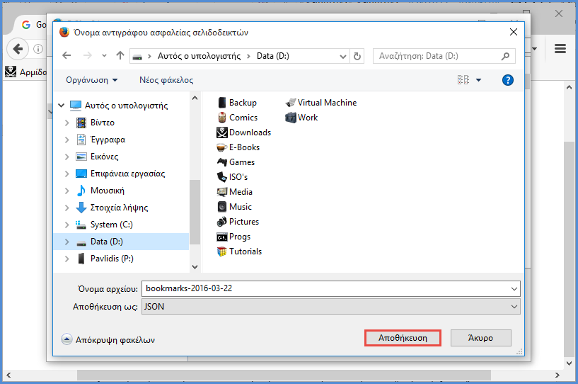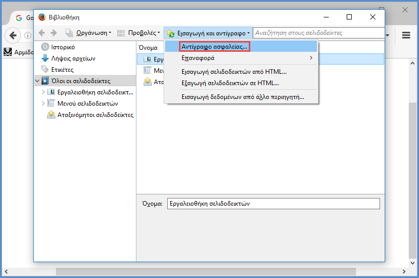 Αντίγραφα Ασφαλείας Σελιδοδεικτών.