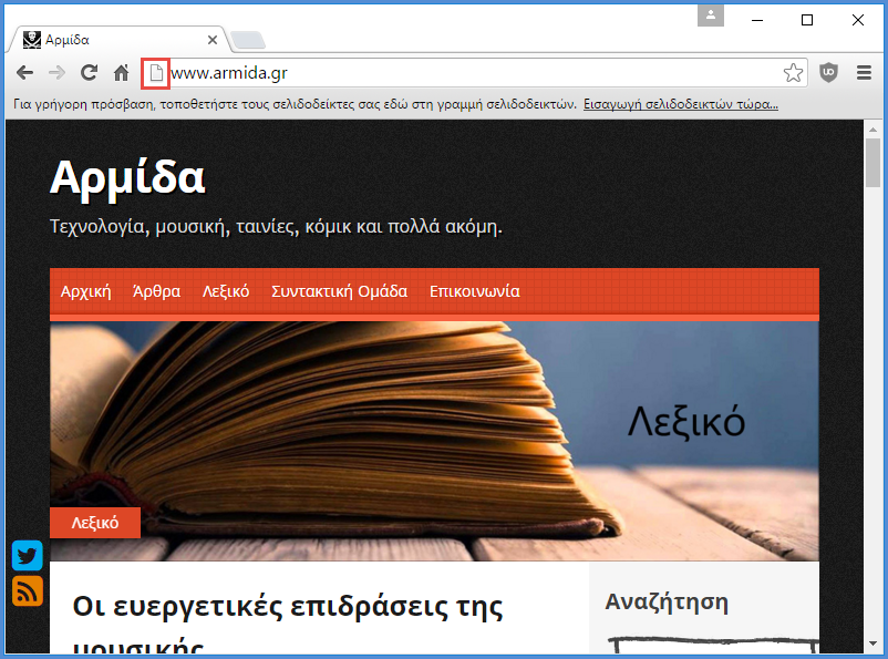Θα μπορούσαμε επίσης να σύρουμε (drag and drop) πάνω στη γραμμή σελιδοδεικτών το εικονίδιο που βρίσκεται δίπλα ακριβώς στη διεύθυνση της ιστοσελίδας.