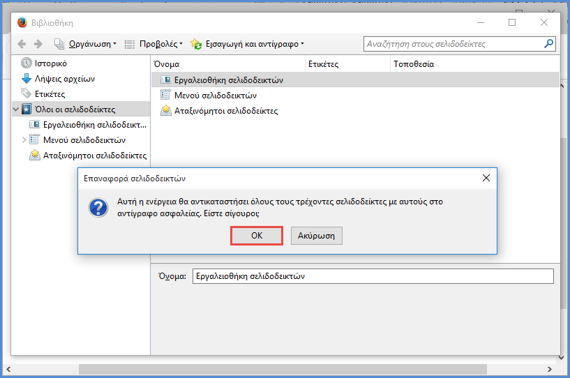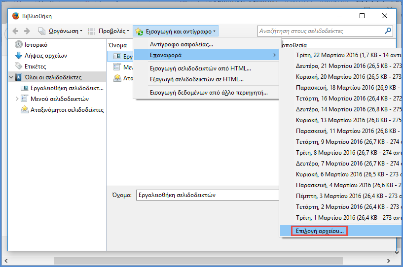 Επαναφορά Αντιγράφων Ασφαλείας Σελιδοδεικτών.