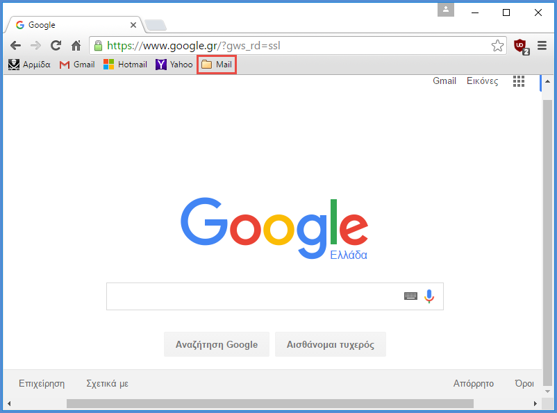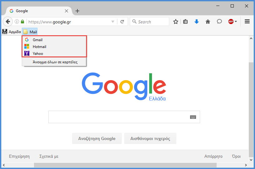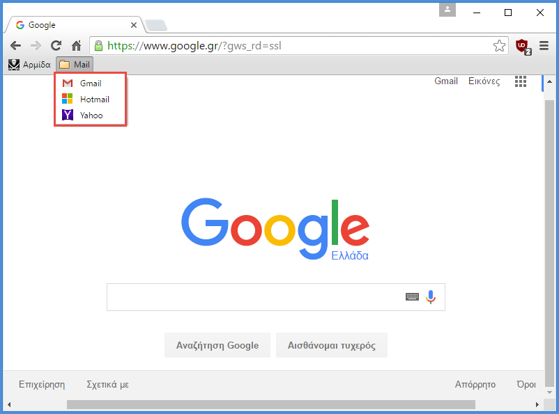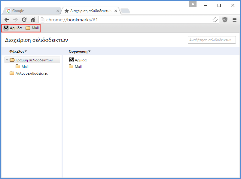 Παρατηρούμε ότι οι σελιδοδείκτες μας έχουν μεταφερθεί επιτυχώς στη γραμμή σελιδοδεικτών.