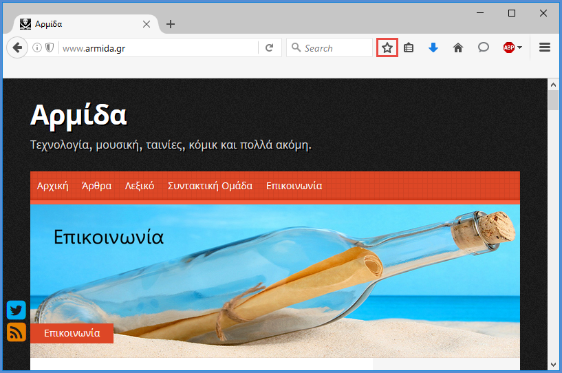 Ανοίγουμε το Mozilla Firefox και κάνουμε κλικ στο εικονίδιο δίπλα στο αστεράκι.